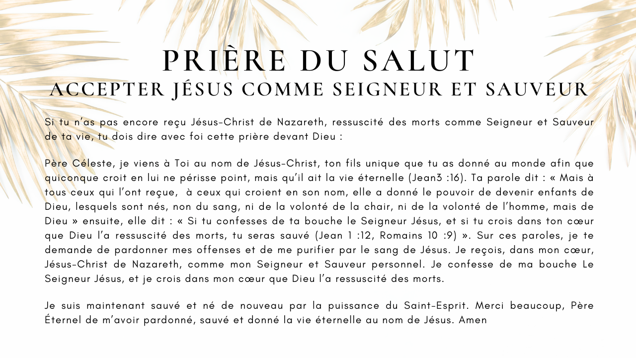 C'est dans la présence de Dieu que les bontés de l'Éternel se renouvellent, car nous sommes tous interdépendants les uns des autres. Je t'invites à croître avec Jésus-Christ dans un environnement saint, et à mener une vie de consécration en tant que véritable disciple de Christ.